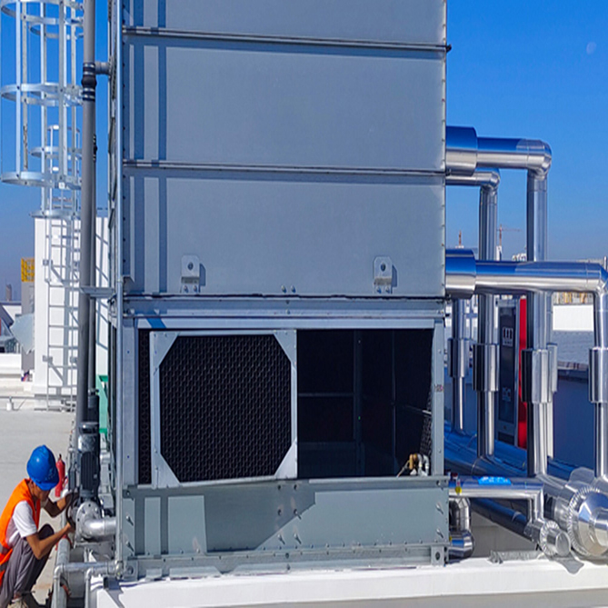 防凍:在寒潮期間,環(huán)境溫度可能會很低,導致設備出現(xiàn)凍結、凝固、析出結晶等現(xiàn)象。因此,需要確保設備在寒潮期間保持適當?shù)臏囟龋苊獬稣9ぷ鳒囟葏^(qū)間,對于正在使用中的設備,需要開啟循環(huán)水塔或冰水機的電輔助加熱功能,配有散熱風扇調節(jié)器的循環(huán)水塔,可以調節(jié)水塔的散熱扇的開啟溫度,另外,為了降低循環(huán)冷卻水的凝固點,可在循環(huán)的水路中添加適量的乙二醇或防凍液,一般按量添加約35%即可。